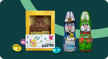 Chez IGO Promo, vous ne trouverez pas seulement les cadeaux promotionnels « standards » pour Pâques comme les œufs de Pâques ou les lapins de Pâques en chocolat. Dans notre gamme, vous trouverez de nombreuses autres friandises avec lesquelles vous pourrez surprendre tout le monde à Pâques. Par exemple, nous proposons de délicieuses sucettes de Pâques ou une boîte avec un brownie ou toutes sortes de friandises pour un « goûter de Pâques ». Ou faites-vous envoyer du chocolat de Pâques sous la forme d'un télégramme en chocolat ou d'un message de votre choix, en chocolat! Bien entendu, nous pouvons également ajouter votre logo. Vous surprendrez certainement les destinataires avec un cadeau aussi original.